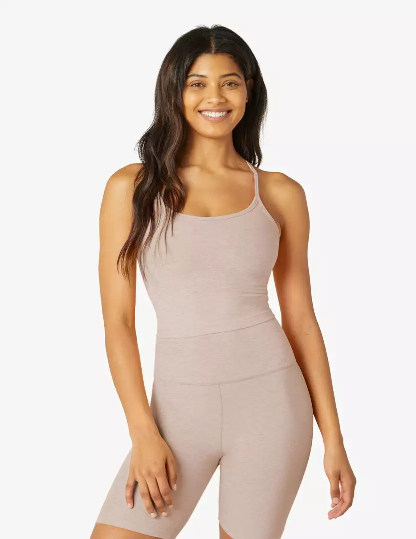 It’s everyone’s favorite super soft Spacedye! This best-selling skinny racerback tank features a shelf bra for plenty of support. With cute cropped silhouette and all-over soft brown leopard print, it’s the perfect wardrobe staple. Make it a set with matching legging! Exclusively sold on beyondyoga.com.