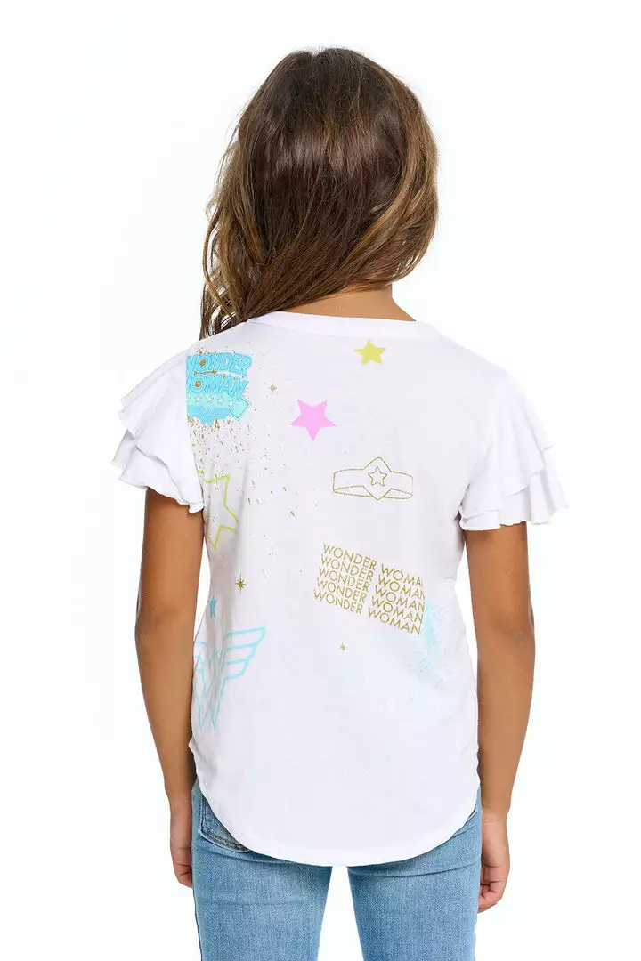 - Wonder Woman Girls Recycled Vintage Jersey Flutter Sleeve Tee