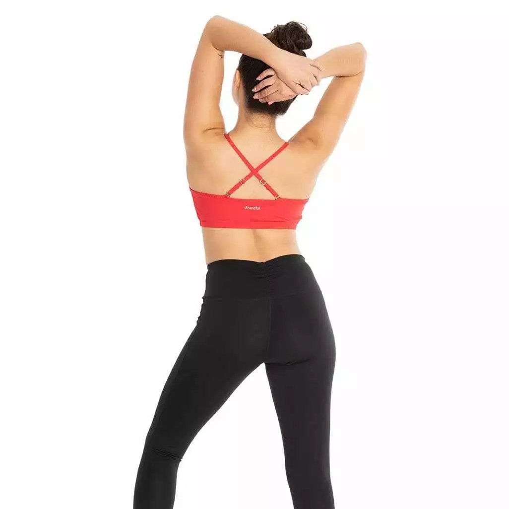 The Handful Adjustable Sports Bra is a washable soft, versatile, wear-everywhere chafe-free moisture-wicking sports bra featuring pockets, removable pads, and straps that can be worn in three ways. It is the original do-it-all, all-day-long adjustable sports bra!