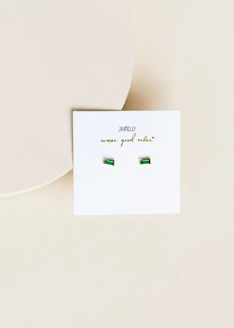 A classic baguette cut for just a flash of color. Made for stacking, layer in this definitive shape for a fresh new take. In rich emerald green to add a luxurious feel even in your favorite tee.
