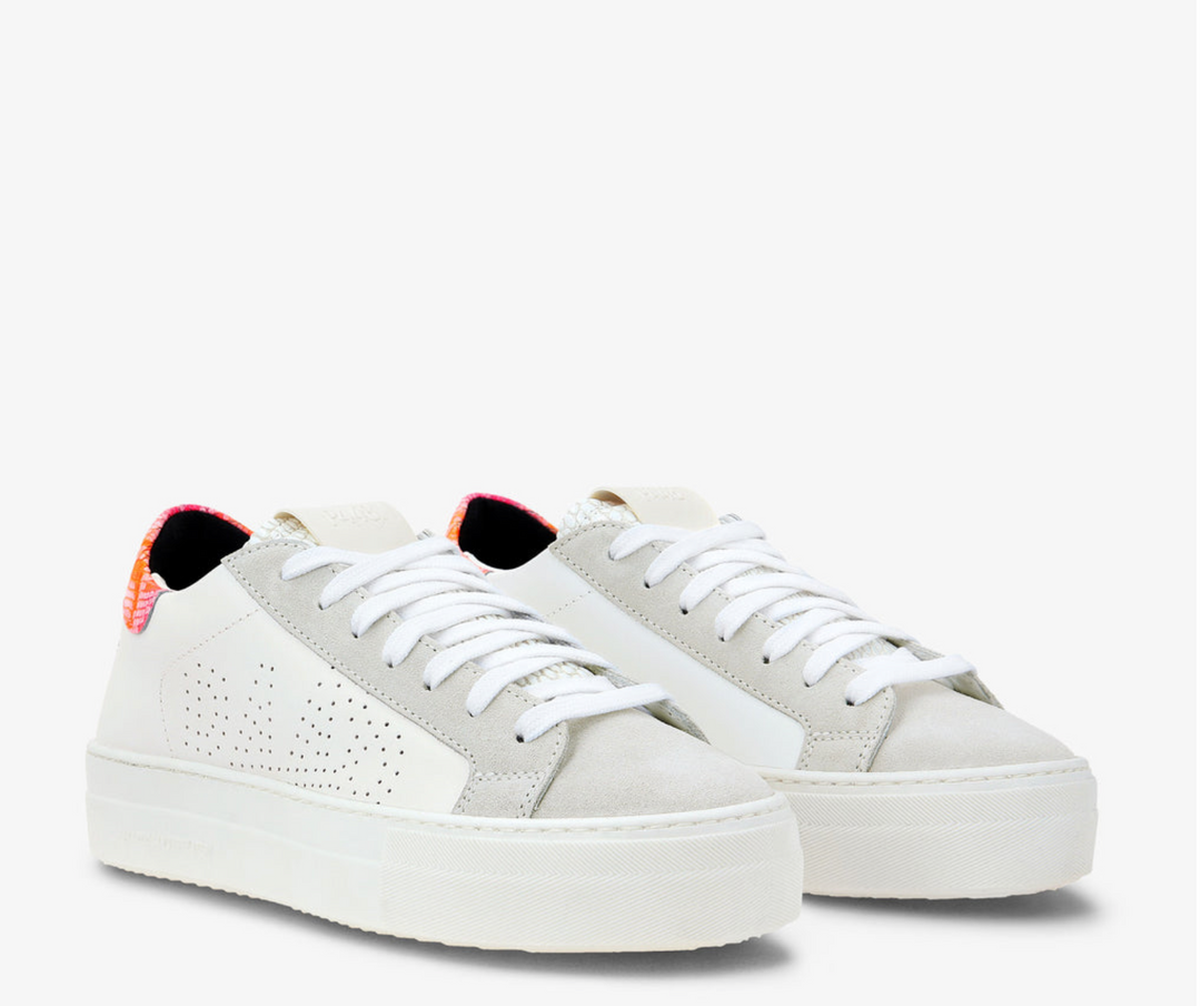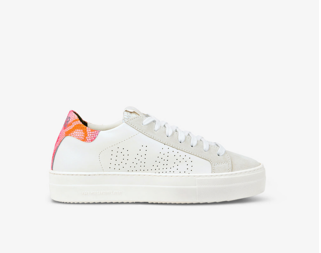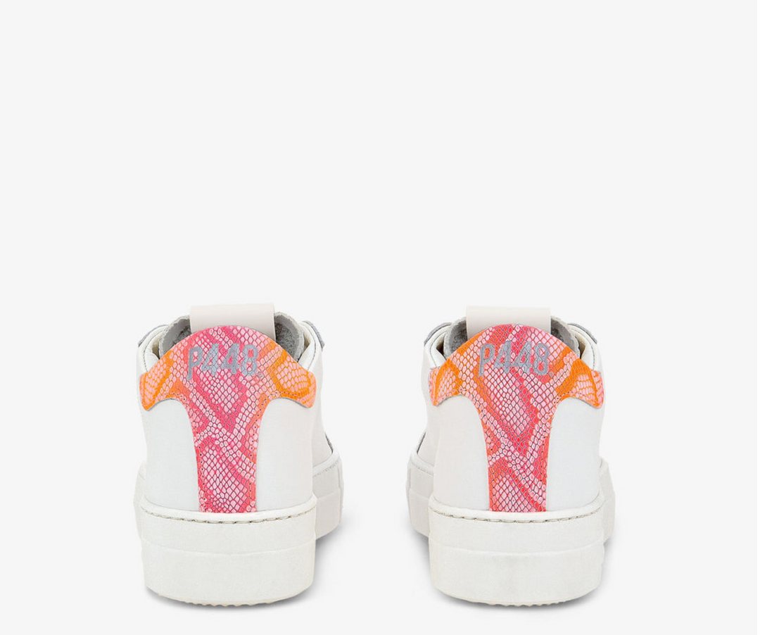 - Fluorescent pink & orange snake-embossed leather heel tab