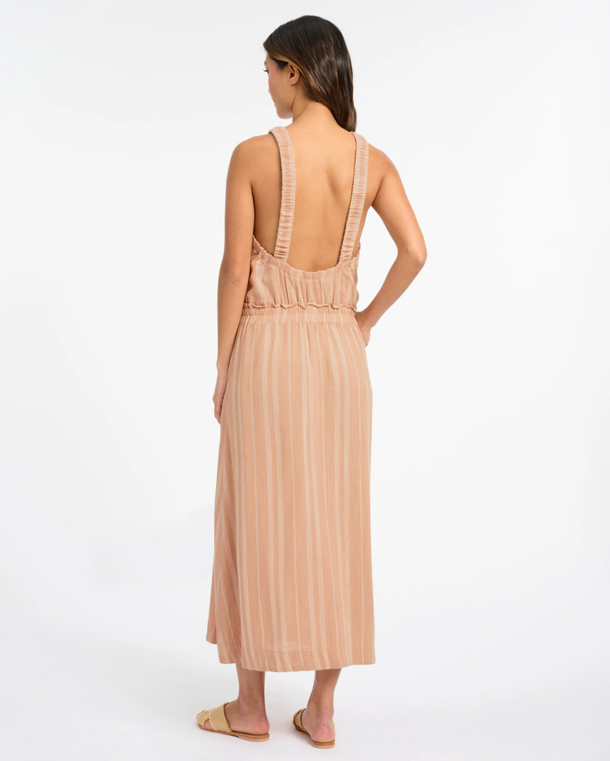 Sophisticated in the front and playful in the back. This is why you’ll love reaching for our Bristol Dress. The high crew neck leaves just enough space for a delicate chain or two while the back scoops down into a square open back. The ruched straps keep everything in place (while also covering any sign of bra straps). The stretch waist and hidden pockets are just the icing on top– all of this crafted from a yarn dyed linen blend so you’re never not refreshed.